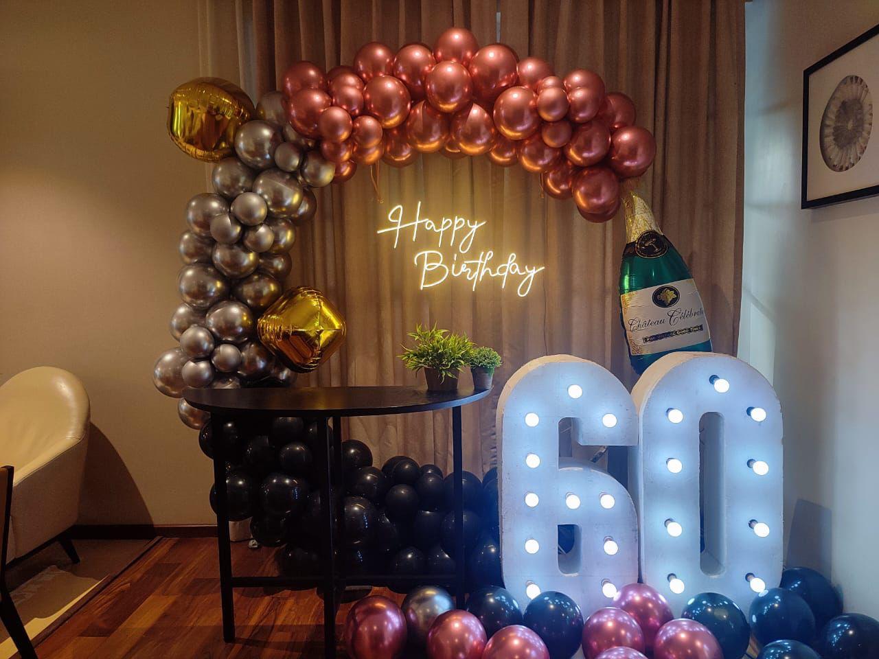 To add visual interest and flair to the balloon ring, additional accents may be incorporated. This could include ribbons, bows, tassels, or streamers interspersed among the balloons. Themed decorations such as miniature props, stickers, or cutouts may also be included to personalize the design according to the birthday theme. It is a whimsical and eye-catching decoration that adds charm and excitement to any birthday celebration, transforming the party venue into a joyful and festive environment.